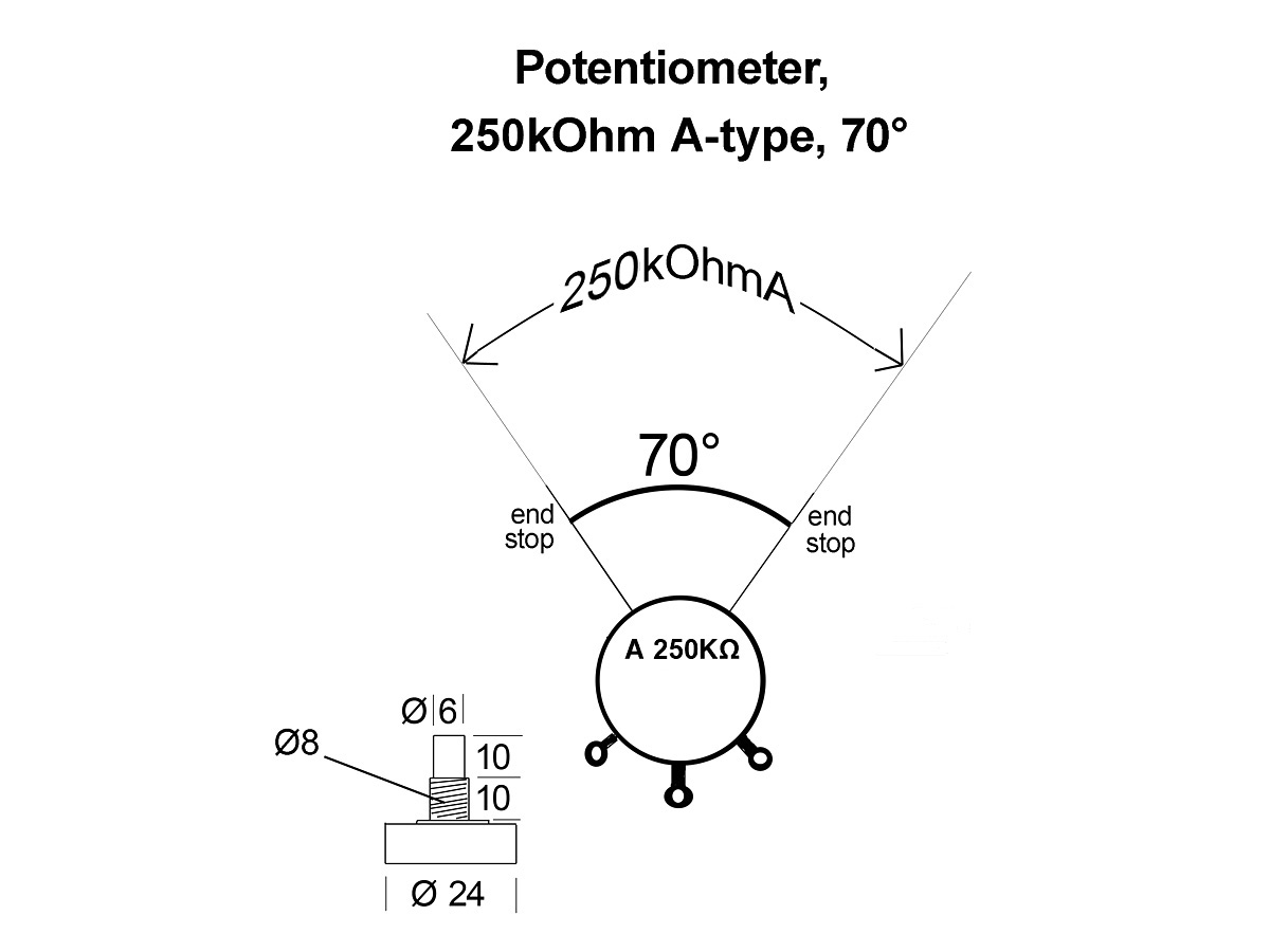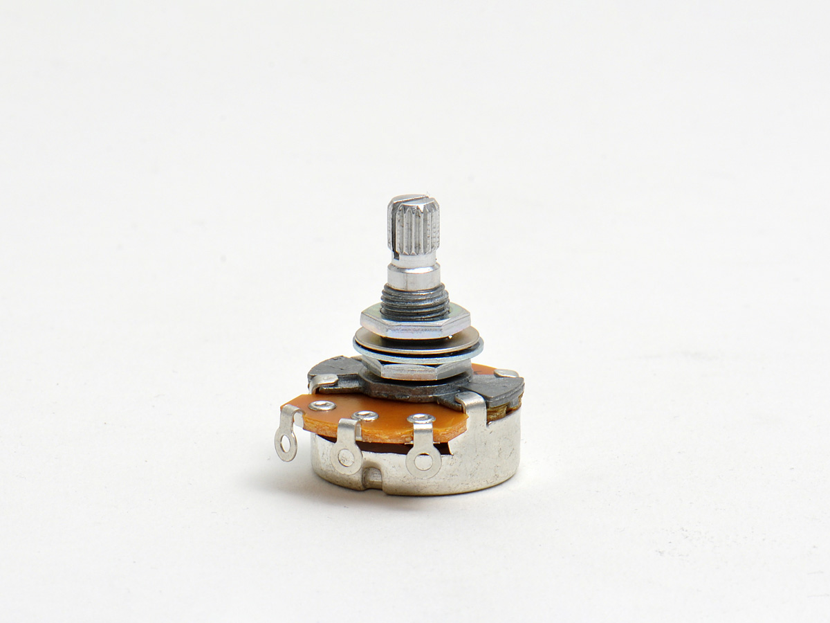 Its shorter control range of only 70° (instead of the 300° of a normal potentiometer) enables effective volume or tone swell effects that can be realized in a flash. This potentiometer is used as a standard in the Duesenberg Lapsteels as a tone potentiometer with which you can achieve WahWah-like effects.
